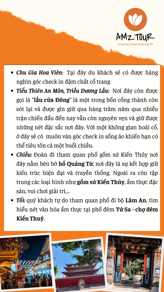 Chuyến tour 4 ngày 3 đêm tham quan 2 địa điểm nổi tiếng là Phượng Hoàng Cổ Trấn - Trương Gia Giới hoặc Bắc Kinh - Thượng Hải sẽ là lựa chọn thích hợp với những du khách yêu thích và muốn khám phá Trung Quốc với chi phí tối ưu. Còn với những du khách muốn trải nghiệm trọn vẹn đất nước cùng nhiều hoạt động hấp dẫn thì lịch trình cung đường xuyên qua 3 thành phố nổi tiếng Côn Minh - Lệ Giang - Shangri La từ 6 ngày 5 đêm trở lên sẽ là hành trình lý tưởng nhất.